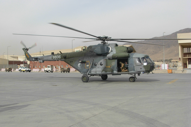 Dopravní vrtulník Mi-171Š na letišti v Kábulu, při plnění operačního úkolu v roce 2011