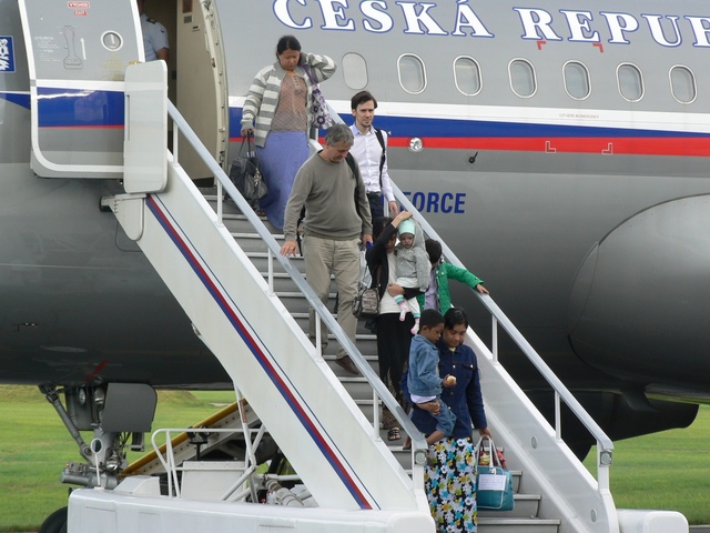 23.7.2012 Tři děti z Barmy vystupují z letounu Airbus A-319 CJ