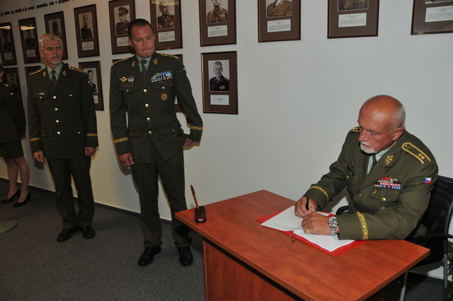 Generál Hynek Blaško podepisuje protokol o předání funkce velitele společných sil na GŠ AČR