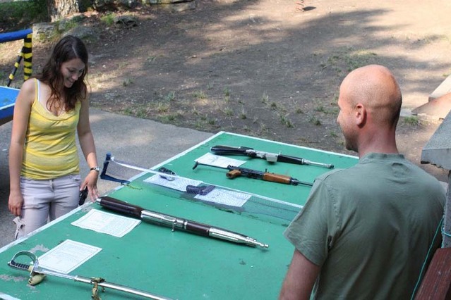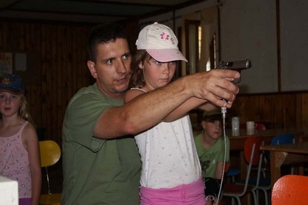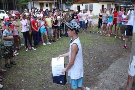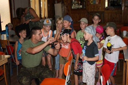 Pracovník organizačního oddělení Posádkového velitelství Praha Branislav CHOREŇ předává dětem diplomy