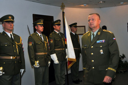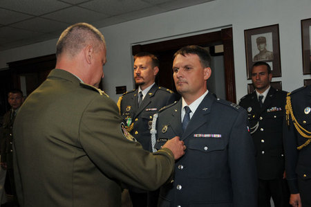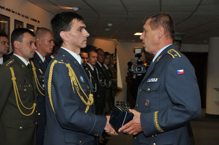 Čestný odznak AČR Za zásluhy III. stupně převzal od generála Žižky praporčík Jiří Pavlečka