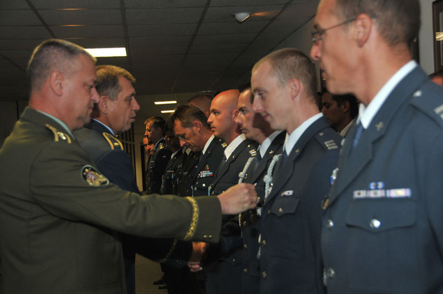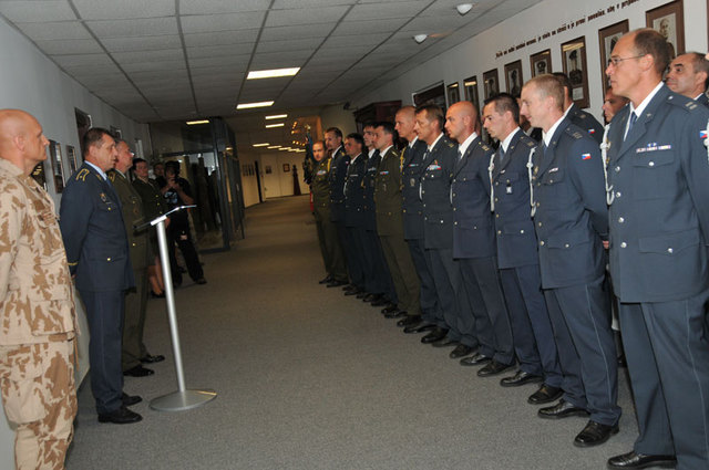 Slavnostní nástup vojáků, kteří se nedávno vrátili ze zahraničních misí...spolu s prvním zástupcem náčelníka GŠ AČR generálem Miroslavem Žižkou se předání medailí zůčastnili také zástupce ředitele Společného operačního centra MO brigádní generál Jaroslav Kankia a velitel základny v Náměšti nad Oslavou plukovník Libor Štefánik