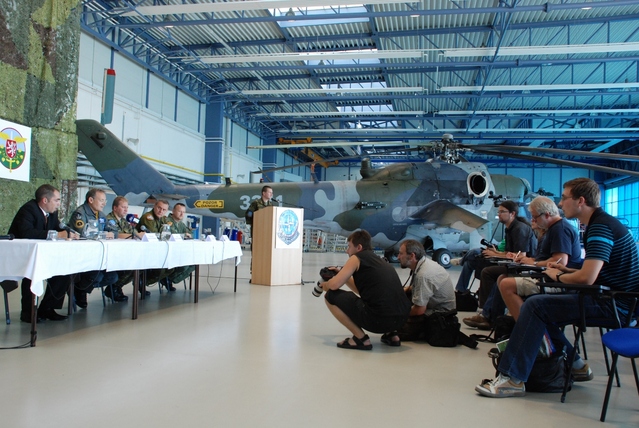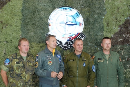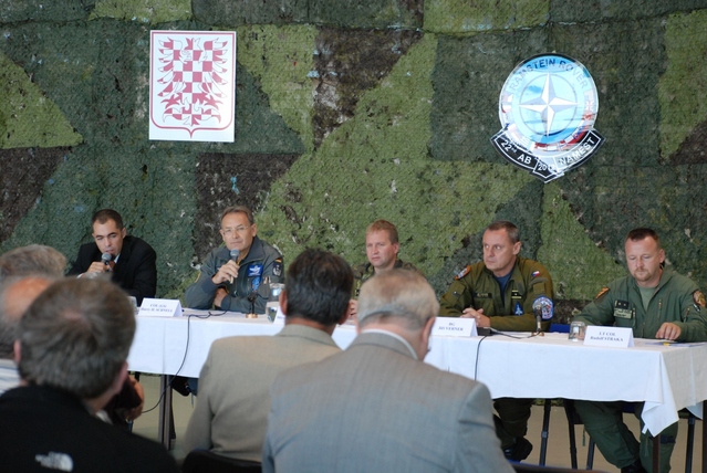 Hlavní představitelé cvičení – zleva zástupce velitele 22. základny letectva plukovník Ing. Miroslav Svoboda, řídící cvičení za NATO plukovník generálního štábu Harry H. Schnell, velitel Vzdušných sil AČR a řídící cvičení za českou stranu brigádní generál Ing. Jiří Verner a zástupce velitele 22. křídla podplukovník Ing. Rudolf Straka
