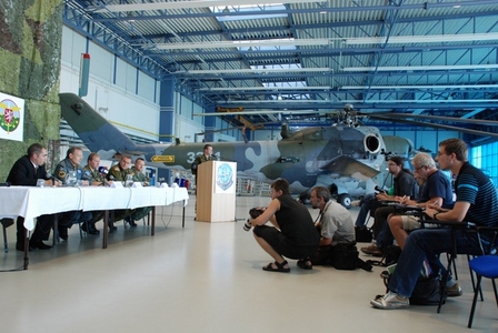 hlavní představitelé cvičení – zleva řídící cvičení za NATO plukovník generálního štábu Harry H. Schnell, zástupce velitele 22. základny letectva plukovník Ing. Miroslav Svoboda, velitel Vzdušných sil AČR a řídící cvičení za českou stranu brigádní generál Ing. Jiří Verner a zástupce velitele 22. křídla podplukovník Ing. Rudolf Straka