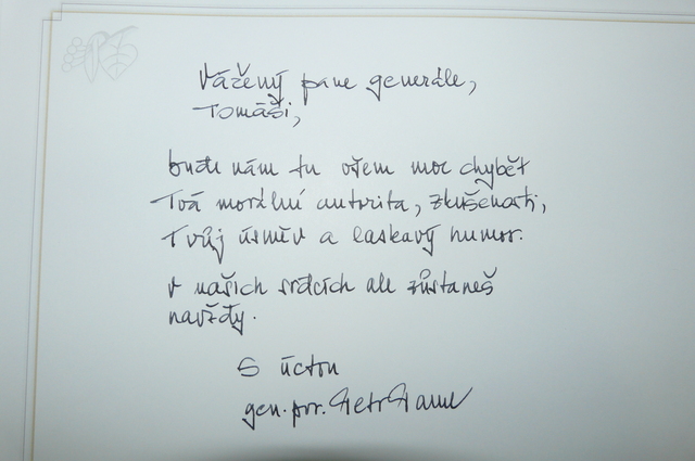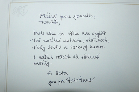 zástupce NGŠ AČR-Inspektor AČR generál František Maleninský připojil svůj podpis do kondolenční knihy