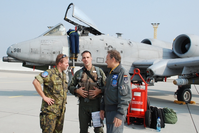 Zástupce velitele 22. zL plukovník Miroslav Svoboda, velitel skupiny letounů A-10 podplukovník Clinton Eichelberger a řídící cvičení za NATO plukovník generálního štábu Harry Schnell