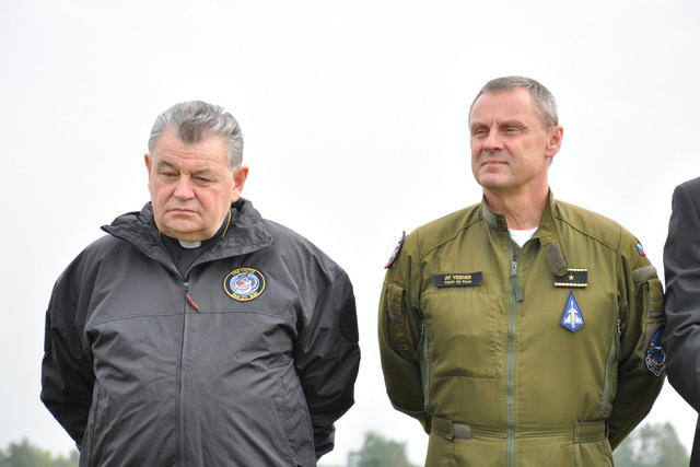 Velitel Vzdušných sil AČR brigádní generál Jiří Verner při zahajovacím ceremoniálu s kardinálem Dominikem Dukou