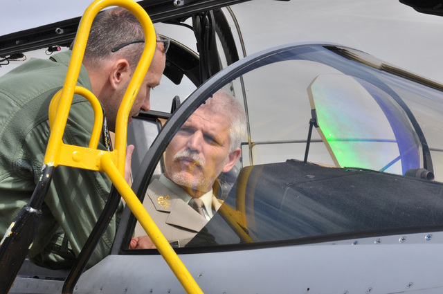 Náčelník Generálního štábu AČR generálporučík Petr Pavel v kokpitu letounu JAS-39 Gripen