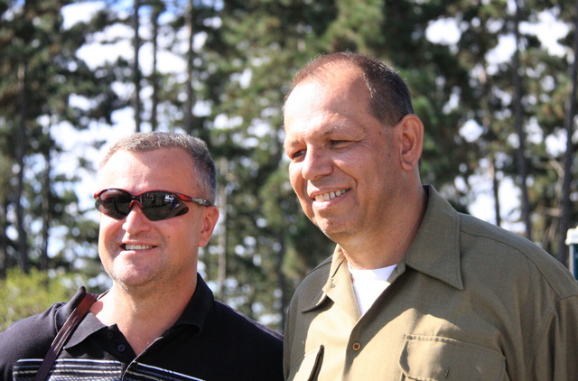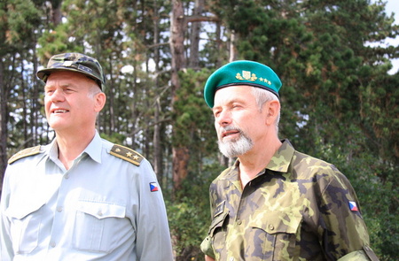 Generálmajor Miroslav Žižka a organizátor akce Písmena Ivan Herák sledují činnost v terénu