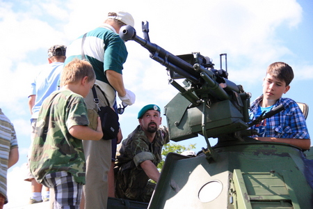 Generálové Kozler a Martínek sledují nadšeným i kritickým kritickým okem vojáky na bojišti