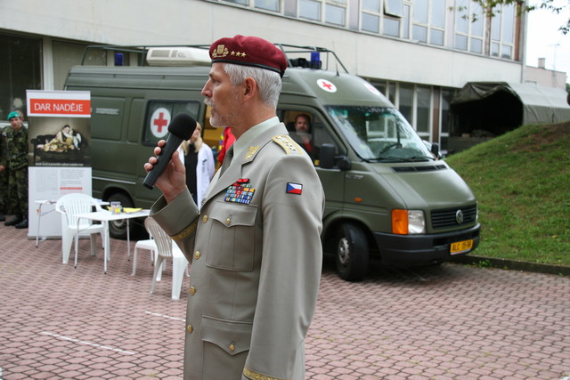 Generál Petr Pavel ve Slaném, za ním speciální mobilní jednotka ATOS z Ústřední vojenské nemocnice v Praze