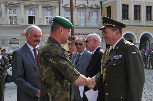 Generál Žižka spolu s Přemyslem Sobotkou předali pamětní odznaky bývalým velitelům - ocenění přebírá plukovník gšt. Miroslav Knopp