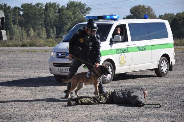 Agresivní jedinec usměrněný zásahem vojenského psa a psovoda