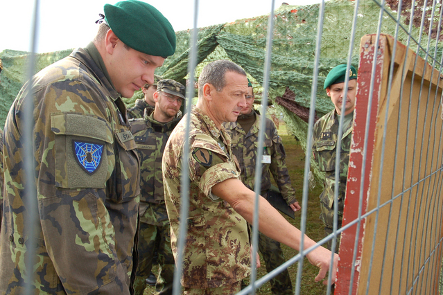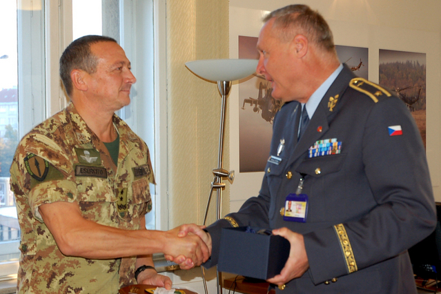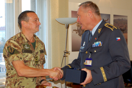 Genmjr. Bellacicco převzal zápis o hodnocení CREVAL jednotky pasivního sledovacího systému Věra S/M od plukovníka Karla Schucha, zástupce náčelníka štábu pro věci operační Velitelství společných sil