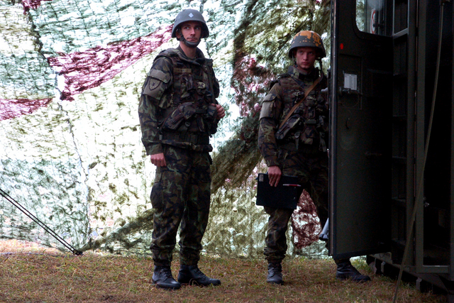 Vojáci jednotky pasivního sledovacího systému Věra S/M na letišti v Táboře
