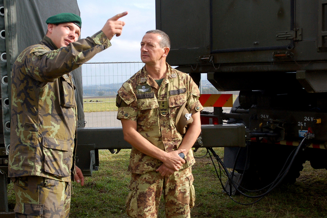 Zástupce velitele ARRC generálmajor Bellacicco hovoří s příslušníky jednotky pasivního sledovacího systému Věra S/M