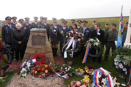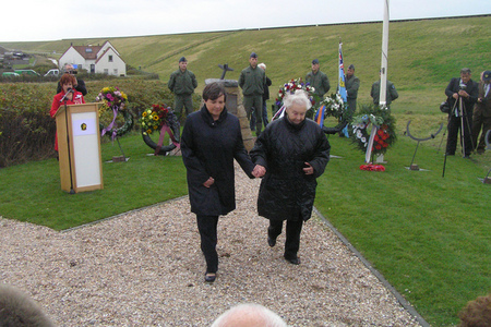 Generál Jiří Verner se zdraví se starostkou obce Zijpe