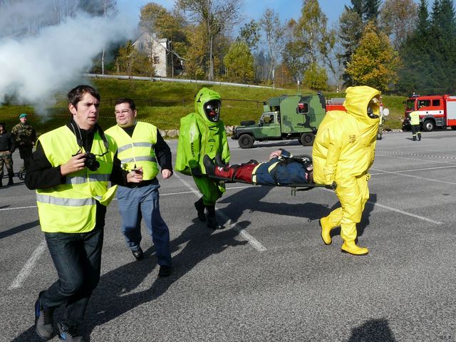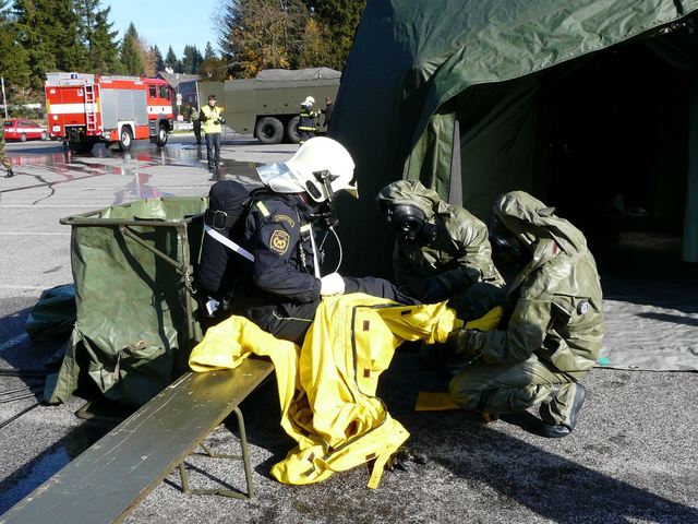 Na místě dekontaminace osob se dekontaminovali všichni cvičící
