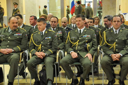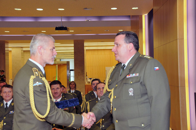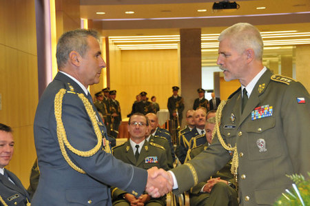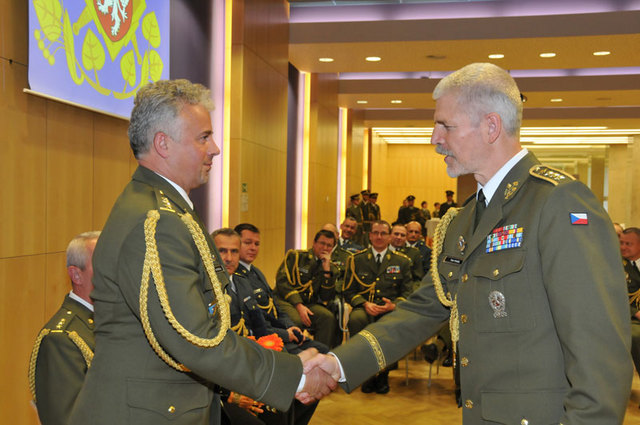 Náčelník generálního štábu blahopřeje k udělení hodnosti plukovník jednomu z devíti nových plukovníků AČR