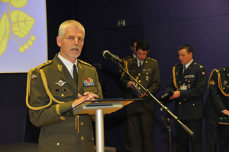 Náčelník GŠ AČR generálporučík Petr Pavel v projevu poblahopřál všem, kteří byli jmenováni do plukovnické hodnosti i odměněni za svou práci vyznamenáními