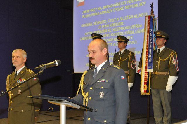 Za nově jmenované plukovníky AČR přednesl plukovnický slib plukovník Václav Česal