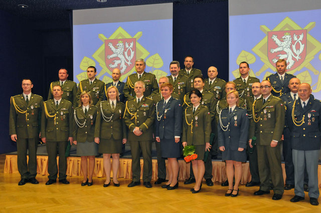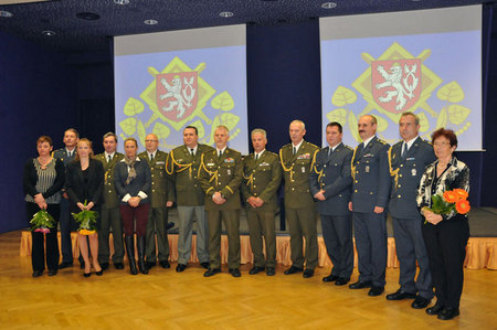 Společné foto těch, kteří převzali čestné odznaky za svou příkladnou práci, s náčelníkem GŠ AČR generálem Petrem Pavlem