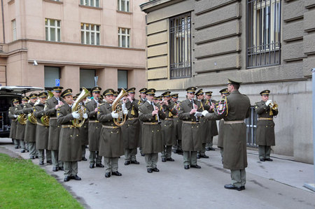 Účastníkům vernisáže i náhodným kolemjdoucím vyhrávala k dobré náladě Ústřední hudba AČR pod taktovkou dirigenta majora Patrika Spinka