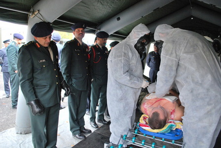 Po simulovaném incidentu chemici vyprošťují zasažené osoby