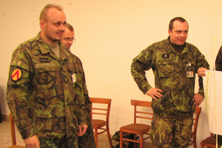 Etický seminář řídil kapitán Marek Maxim Švancara, kaplan strakonické brigády (vlevo),