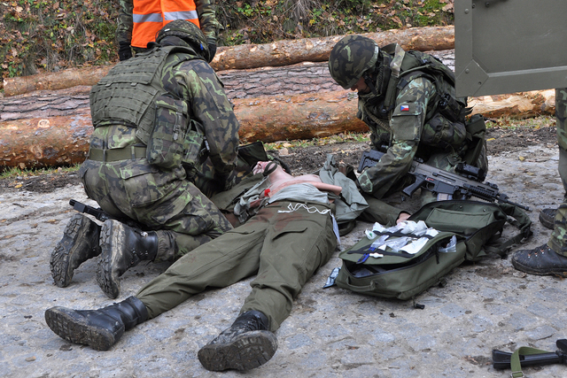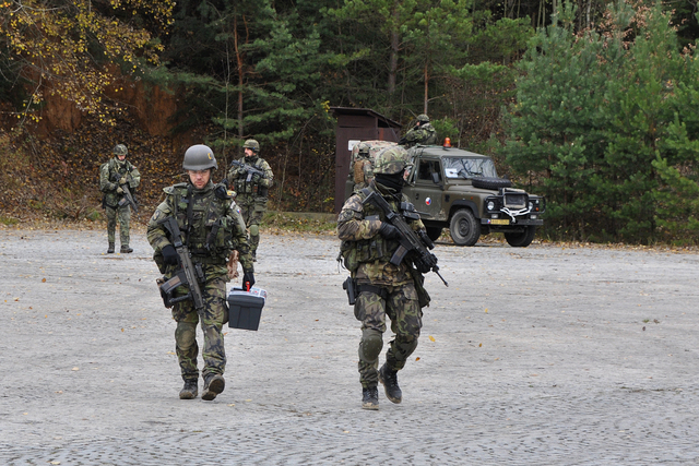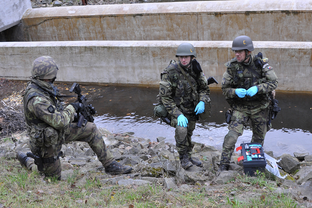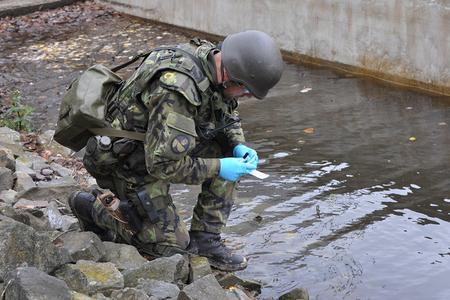 Chemici se chystají na odběr vzorků pod ochranou příslušníků OO PRT