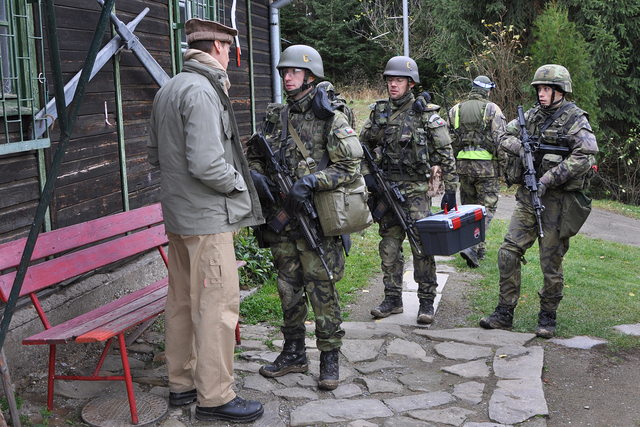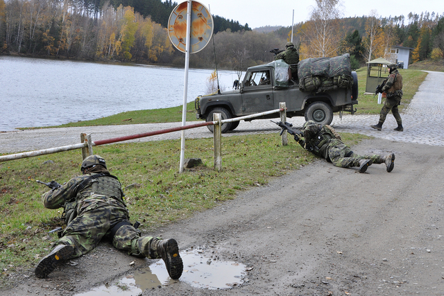 Chemici v doprovodu příslušníků OO PRT míří za správcem vodárenské nádrže