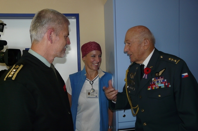 Generál Pavel v rozhovoru s plukovníkem v.v. Jaroslavem Hofrichterem, příslušníkem 311. perutě RAF ve Velké Británii, nositele tří válečných křížů, medaile Za chrabrost a dalších vyznamenání