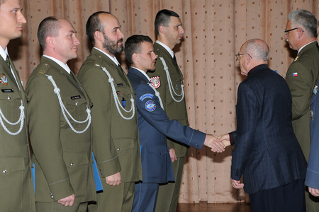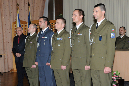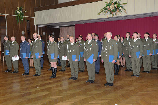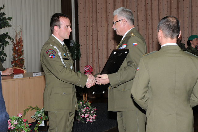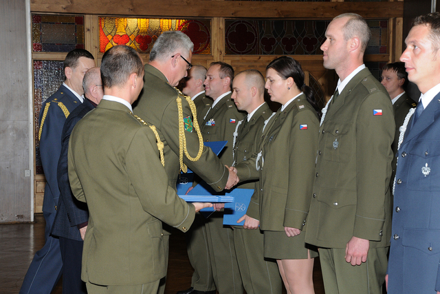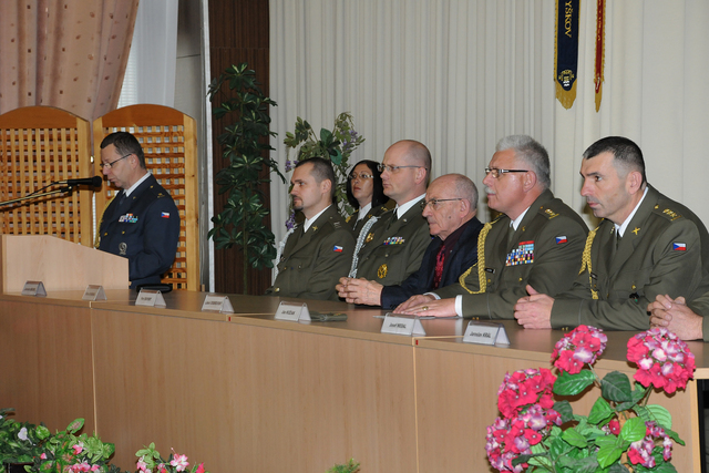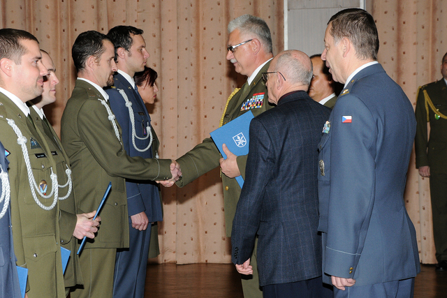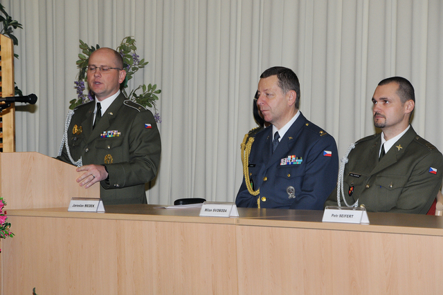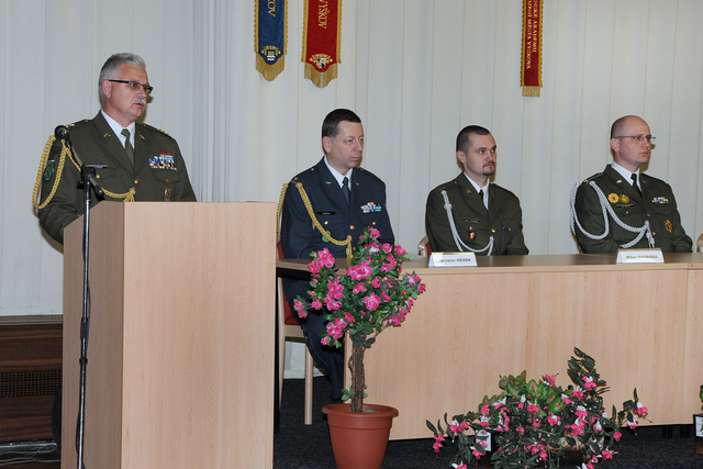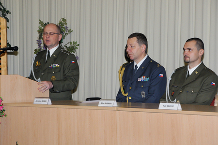 Velitel VeV-VA uděluje za přítomnosti PhDr. Luboše Dobrovského a mjr.Jaroslava Medka absolventské certifikáty