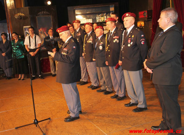 Slavnostní předání čestného členství v Klubu výsadkových veteránů v Divadle Radka Brzobohatého