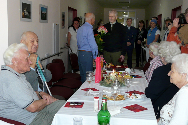 Příjemná atmosféra - obyvatelé Domova pro válečné veterány slavili narozeniny svého přítele a spolubojovníka společně