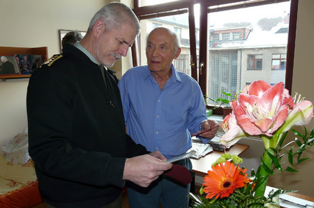 Pavel Budínský, předseda ČSOL gratuluje majoru Korolovi k jeho životnímu jubileu