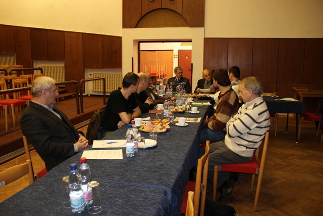 Plukovník Vladimír Barca a Zdeněk Hruška si prohlížejí publikaci Památník V. manifestačního sněmu Československé obce legionářské