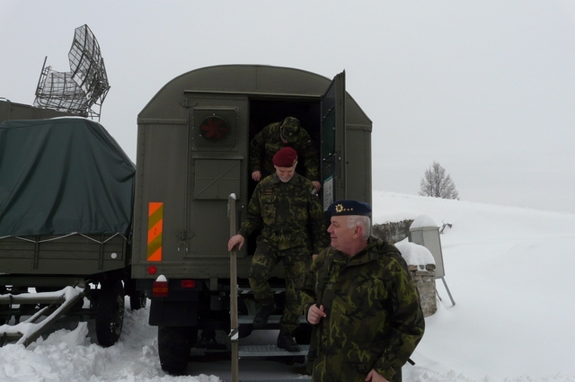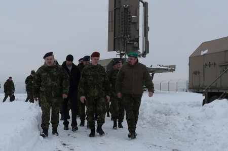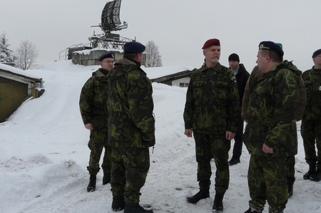 Při prohlídce prostor 5. radiotechnické roty. V pozadí radiolokátor ST-68U CZ