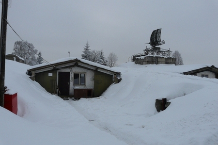 Radiotechnická rota - čas se tu zastavil v minulém století. V pozadí přehledový radiolokátor RL-4AS
