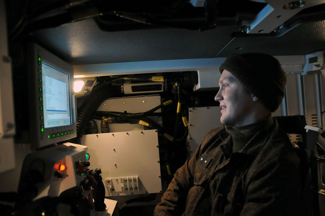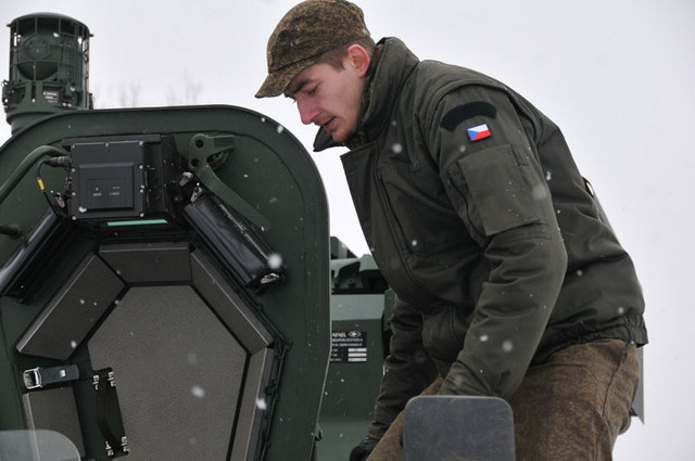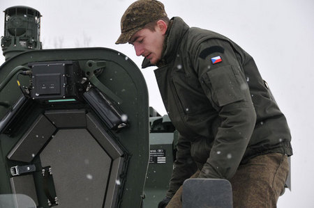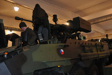 Střelec operátor desátník Tomáš Vaňkát pravidelně kontroluje elektroniku, tedy počítače a kamery, kterými je Pandur vybaven