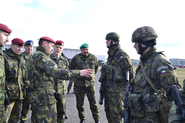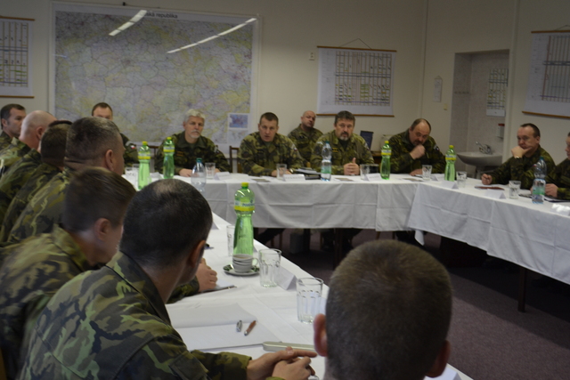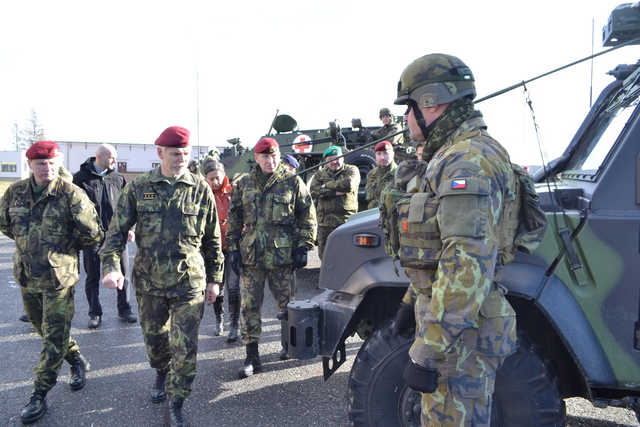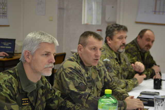 Náčelník GŠ AČR na návštěvě u 4. brn. Zleva: NGŠ AČR generálporučík Petr Pavel, velitel 4. brn plukovník gšt. Miroslav Hlaváč, zástupce NGŠ AČR-ředitel SOC MO generálmajor Aleš Opata, velitel Společných sil brigádní generál Ján Gurník při prezentaci