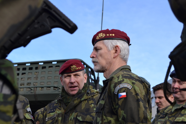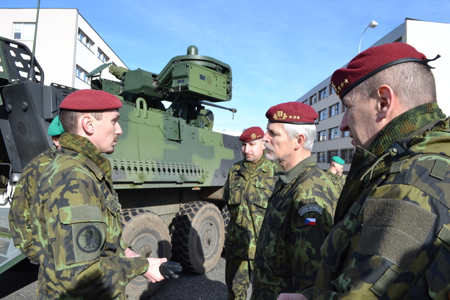 Plukovník gšt. Miroslav Hlaváč (vlevo) představuje NGŠ generálu Petru Pavlovi techniku 4. brn