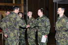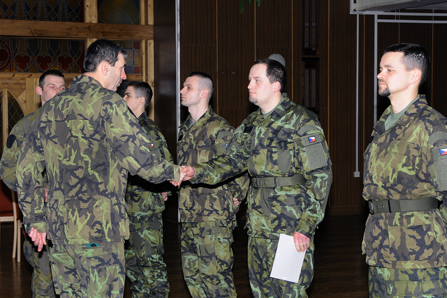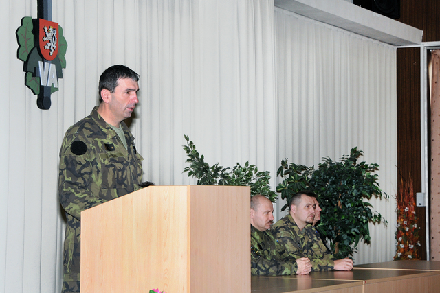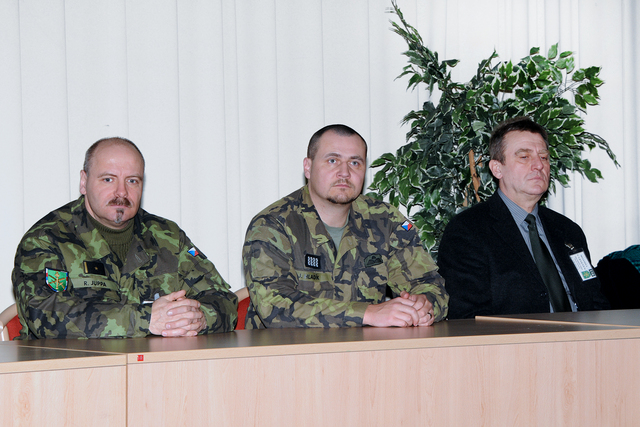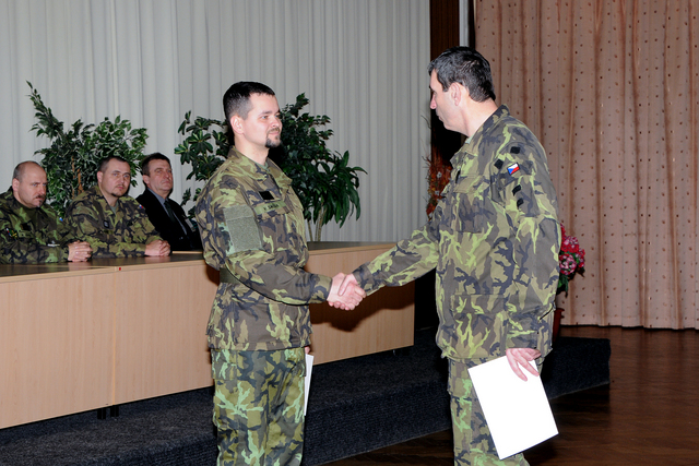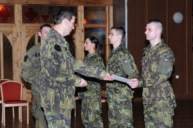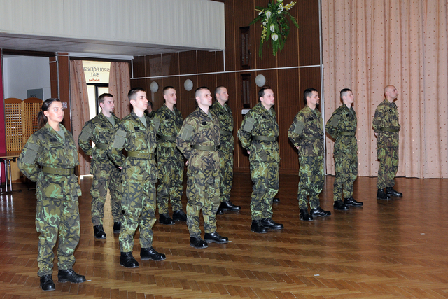 major Juppa, nadpraporčík Hladík a pan Mišaga sledovali závěrečný ceremoniál kurzu AZ