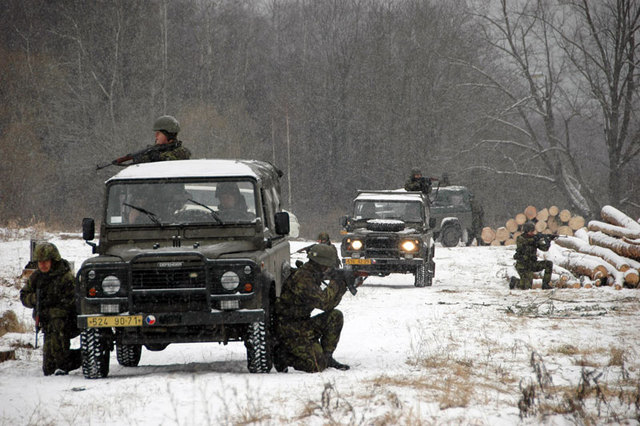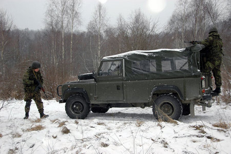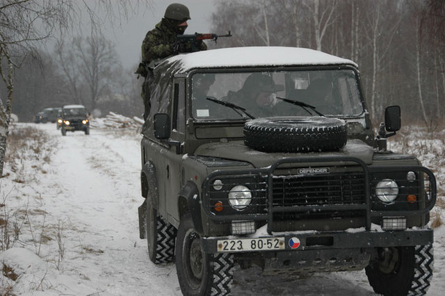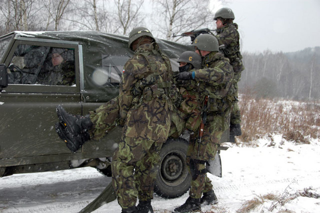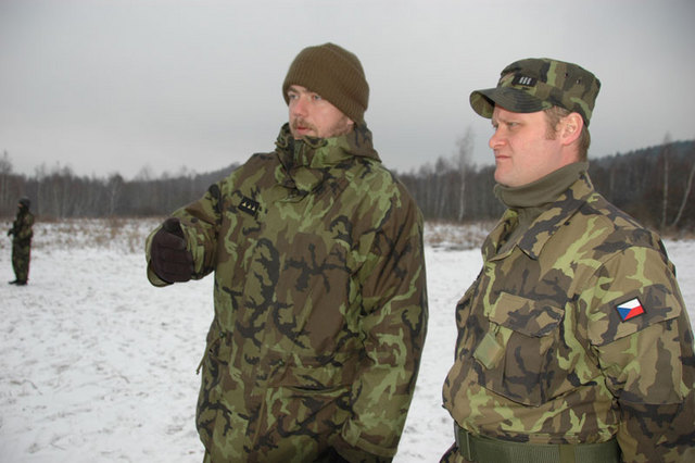 Nadporučík David Izig zástupce velitele roty zabezpečení a vrchní praporčík prap. Pavel Libich při výcviku v jihočeských Boleticích