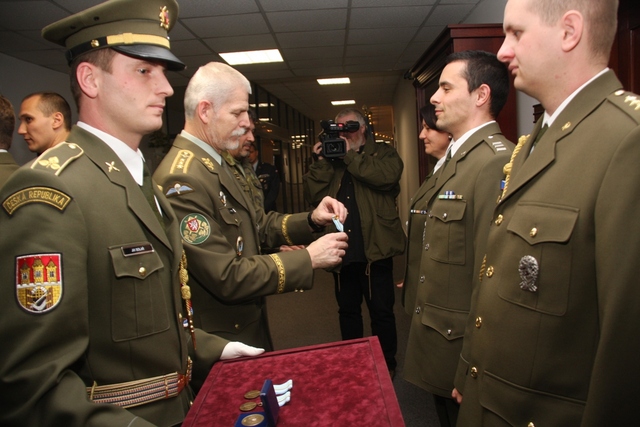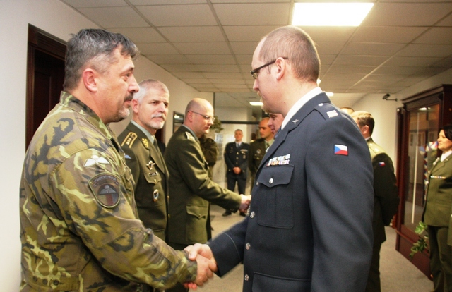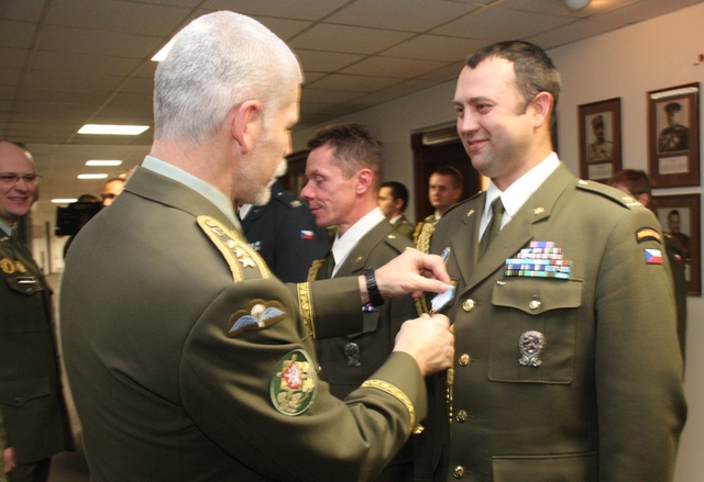 15.2.2013 Generál Opata blahopřeje jednomu z účastníků mise