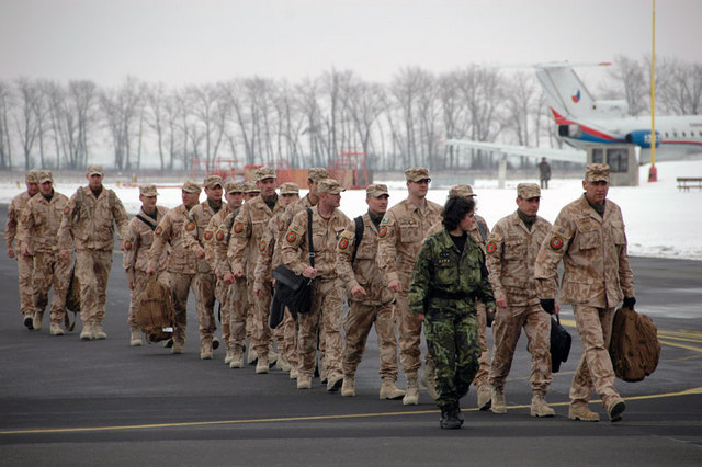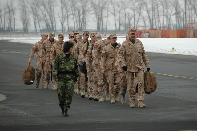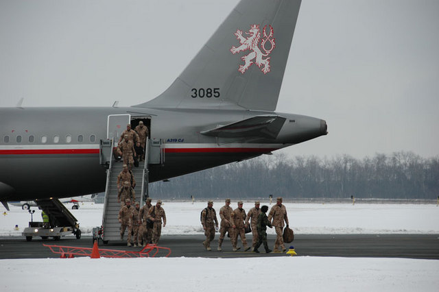 Velitel 10. PRT plukovník gšt. Josef Kopecký v čele jednotky, která se ve čtvrtek 21. února v odpoledních hodinách vrátila do Prahy