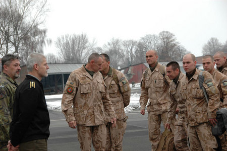 Veliteli 10. PRT a jeho vojákům poděkovali za úspěšnou reprezentaci náčelník GŠ AČR generálporučík Petr Pavel a jeho zástupce generálmajor Aleš Opata ( zcela vlevo)