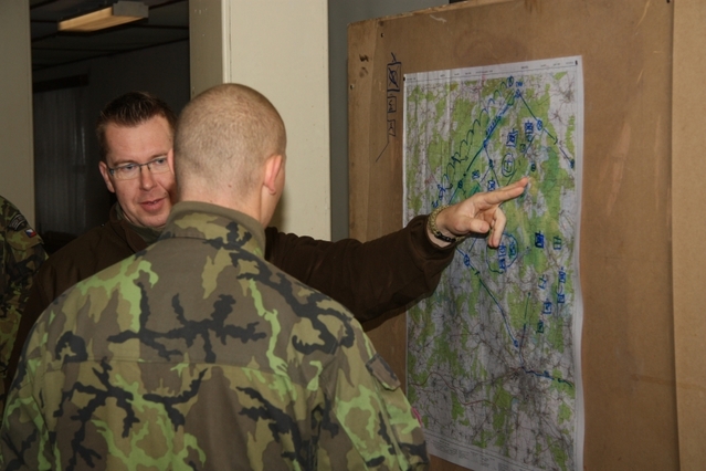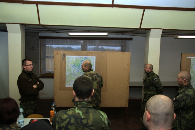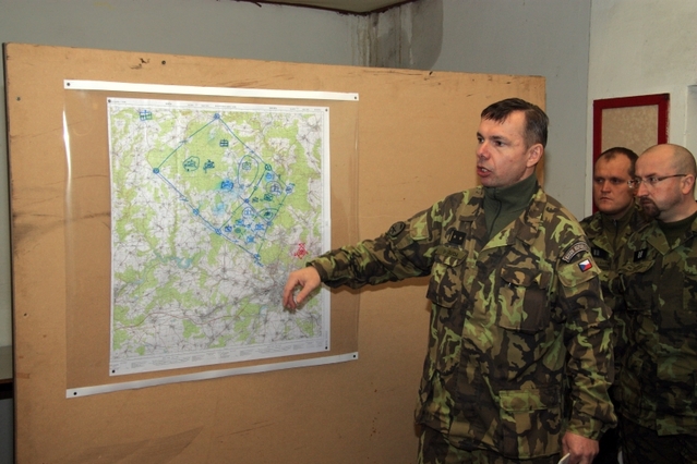Zástupce velitele úkolového uskupení mjr. Křenek pří výkladu značkové situace