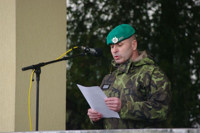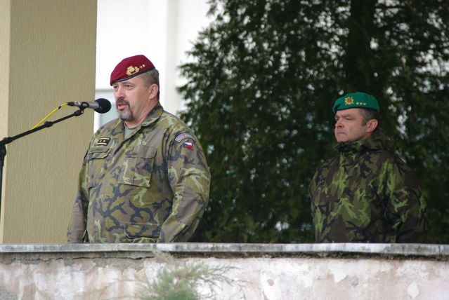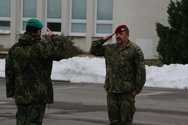 Oceněným vojákům blahopřeje i zástupce velitele ženijní brigády, plukovník Lustyk