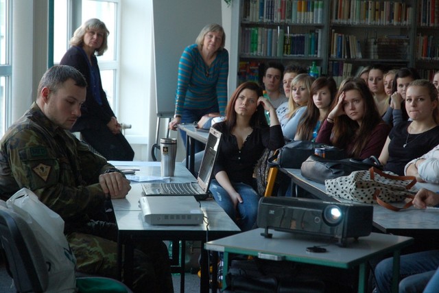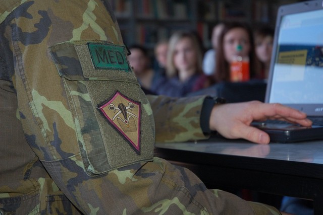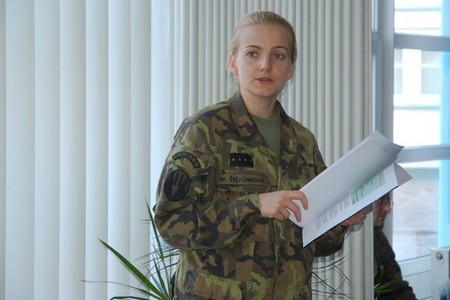 nadporučice Lada Kovářová přiblížila studentům a steudentkám projekt Ženy v armádě
